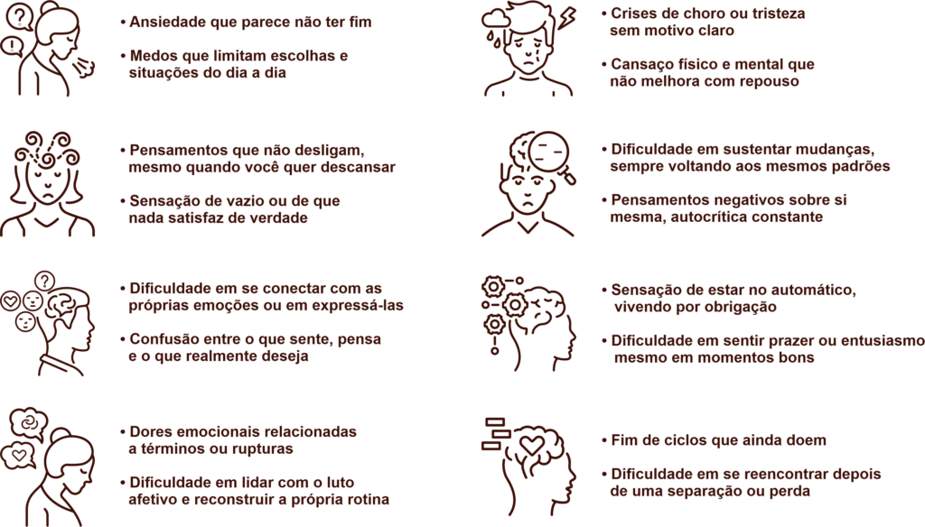 Um espaço para falar livremente, entender padrões que se repetem, elaborar conflitos e descobrir novas formas de lidar com o que te afeta.